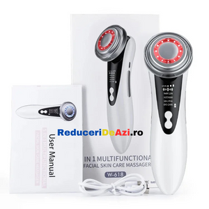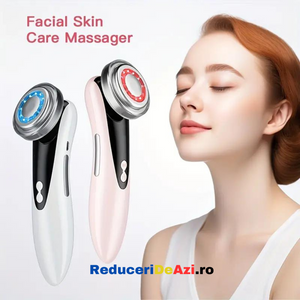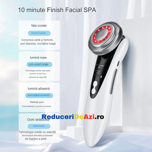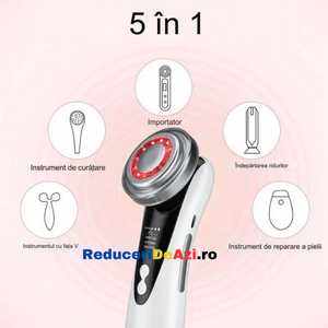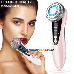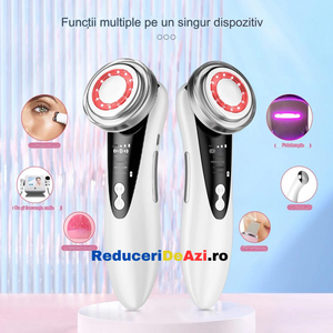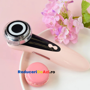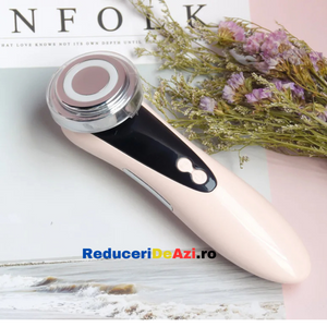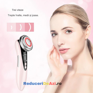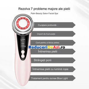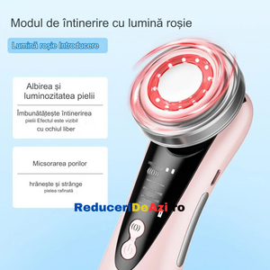 Dispozitiv de rejuventare faciala, cu functii multiple, curatare, masaj antirid, inchidere pori, rejuvenare, Roz