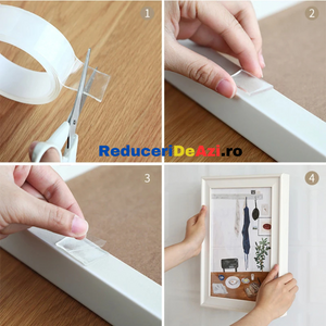 - Cu banda adeziva ultra puternica puteti lipi orice lucru pe perete, sau pe orice alta suprafata dura în cel mai scurt timp, fara sa gauriti.