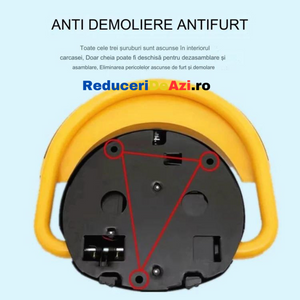 Blocator loc parcare automat, cu telecomanda si alarma, suporta 2 tone, Galben/Negru, rezistent intemperii