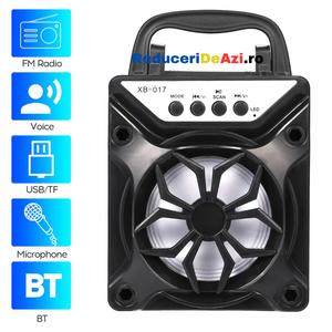 Boxa audio, poate reda muzica wireless de pe orice dispozitiv cu bluetooth, prin cablu audio USB, de la un stick USB ori direct de pe un card de memorie micro SD sau radio.