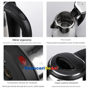 Cana Fierbator Inox, 1500W, 2 L, Declansare Automata, Inox/Negru