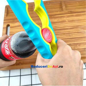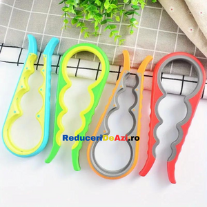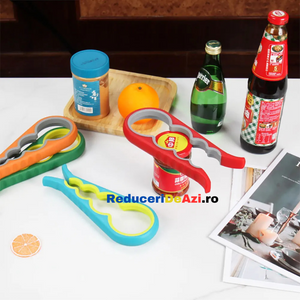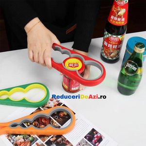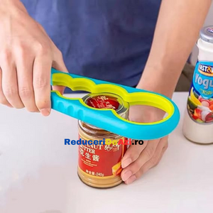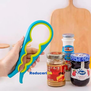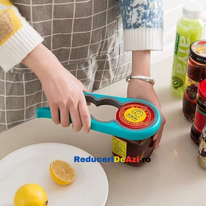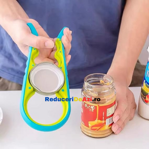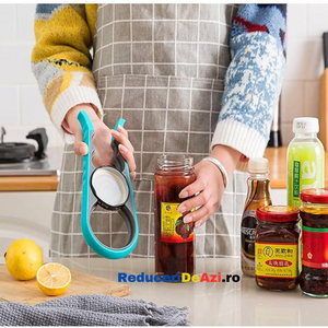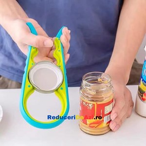 Ai deseori probleme atunci cand vrei sa deschizi sticle sau borcane de diferite marimi? Trebuie sa ceri mereu ajutorul cuiva mai puternic? Dar daca nu este niciunul in jur? Deschizatorul de capace pentru borcane si sticle este produsul potrivit, ce te scoate din acest impas! Este proiectat cu patru prinderi incorporate pentru a ajuta la prinderea si deschiderea borcanelor de cele mai multe dimensiuni.