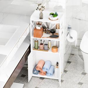 Această dulap de baie pe podea este o adiție versatilă și elegantă pentru casa ta. Proiectat cu atenție la funcționalitate și estetică, are o structură independentă care poate fi amplasată cu ușurință în orice cameră. Dulapul dispune de două uși duble care se deschid pentru a dezvălui un spațiu generos de depozitare, echipat cu un raft reglabil, oferindu-ți posibilitatea de a personaliza spațiul în funcție de nevoile tale. Fie că organizezi articolele de toaletă din baie, depozitezi ustensilele de bucătărie sau expui obiecte decorative în living, acest dulap oferă spațiu suficient de depozitare, menținând în același timp un design compact.