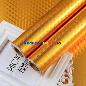 Exploreaza lumea glam a auriului texturat! Vreti o alternativa la tapetul greu de lipit, care nu se imbina? Folia aurie autoadeziva este perfecta pentru dumneavoastra! Fie ca va doriti sa va protejati bucataria si blaturile de arsuri si umflaturi, sau doar sa o folositi ca element de decor, aceasta folie este perfecta pentru transformarea suprafetelor netede, fiind autoadeziv.