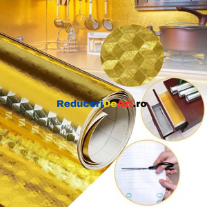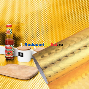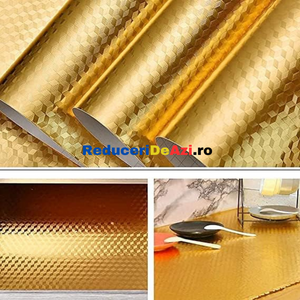 Exploreaza lumea glam a auriului texturat? Vreti o alternativa la tapetul greu de lipit, care nu se imbina? Folia aurie autoadeziva este perfecta pentru dumneavoastra! Fie ca va doriti sa va protejati bucataria si blaturile de arsuri si umflaturi, sau doar sa o folositi ca element de decor, aceasta folie este perfecta pentru transformarea suprafetelor netede, fiind autoadeziv.