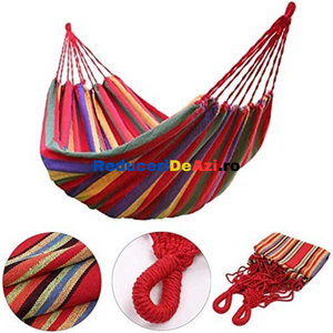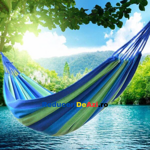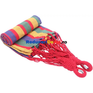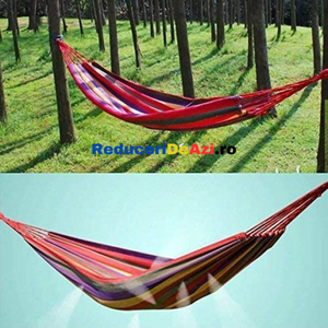 Visul unei relaxari reusite este un hamac prins de doi pomi bogati intr-o padure racoroasa si linistita, cu un pahar de limonada in mana! Sau poate chiar in curtea dumneavoastra, intr-o dupa amiaza placuta de vara, cand v-ati retras pentru niste momente din stresul cotidian! Astfel, acest hamac nu trebuie sa va lipseasca!!