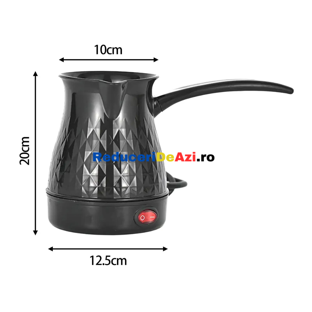 - Cu o capacitate de 0,5 litri, si o putere de 600W, ibricul electric prepara rapid cafeaua, acasa sau in voiaj.