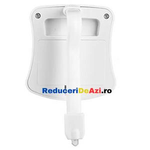 - Functioneaza cu un bec LED, de 1W, care se aprinde in 8 culori diferite, in functie de setarea pe care o alegi.