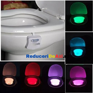 Lampa de veghe pentru toaleta cu LED, senzor de miscare si lumina, 8 culori diferite