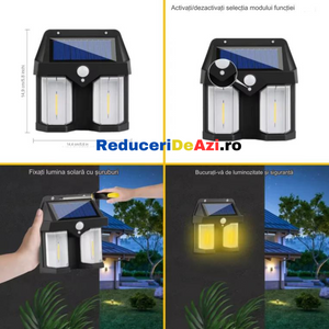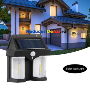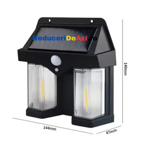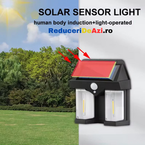 Lampa solara de perete dubla CB 228 tip felinar, decorativ, de perete