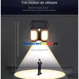 Cu un senzor de miscare integrat, lampa se activeaza automat atunci cand detecteaza prezenta miscarii.
