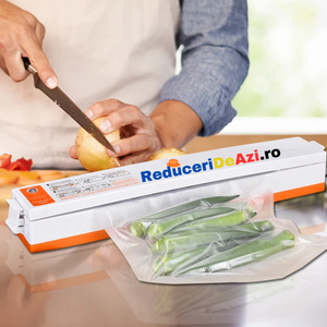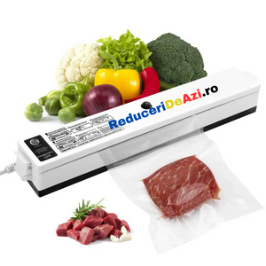 Nu lasa prospetimea alimentelor sa fie o problema! Cu acest aparat de vidat pungi, vei putea mentine gustul si aroma alimentelor preferate pentru mai mult timp. Cumpara acum acest aparat practic si revoluționar pentru bucataria ta!