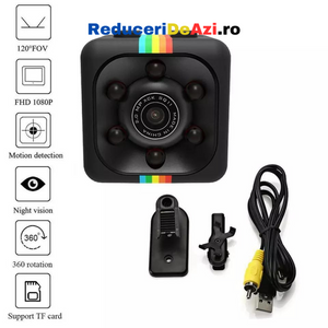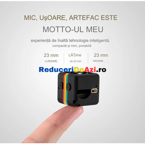 - Are suport de prindere, cu autonomie mare pentru o camera atat de mica, senzor de miscare si infrarosu, filmeaza si inregistreaza deosebit de calitativ si clar.