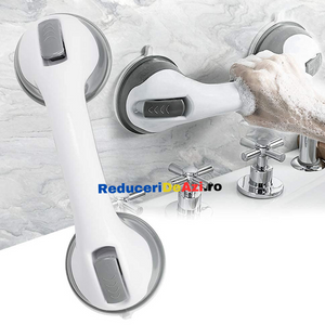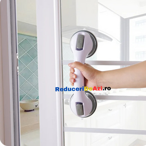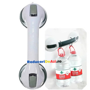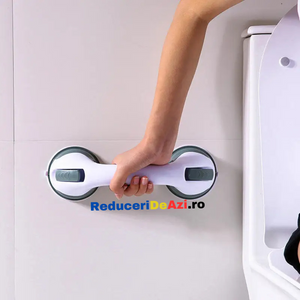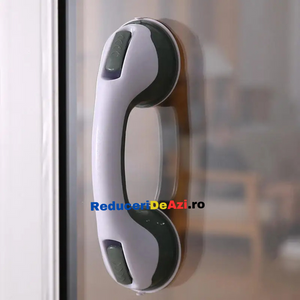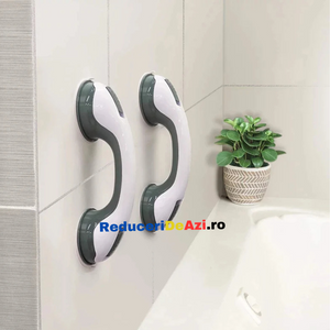 - Manerul este usor de fixat pe perete, gresie sau faianta, avand doua ventuze puternice si un sistem suplimentar de blocare, pentru a sustine greutatea corpului.