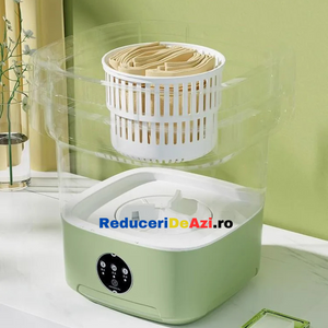 Mașina de spălat pliabilă reprezintă o soluție ingenioasă și eficientă pentru nevoile tale de spălare a hainelor, oferind o combinație de ușurință în utilizare, economie de resurse și performanță de încredere. Cu o capacitate de până la 1,5 kg de haine, această mașină transformă procesul de spălare într-o experiență rapidă și simplă.