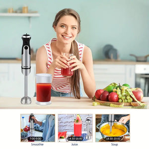 - Vârf de amestecare din oțel inoxidabil: Perfect pentru prepararea supelor, piureurilor și sosurilor, oferind durabilitate pe termen lung.