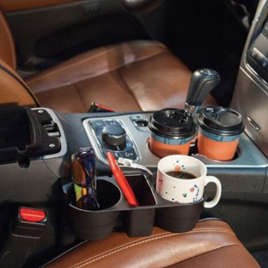 - Două suporturi pentru pahare: Permite fixarea în siguranță a băuturilor sau sticlelor mici, prevenind vărsarea acestora în timpul condusului.