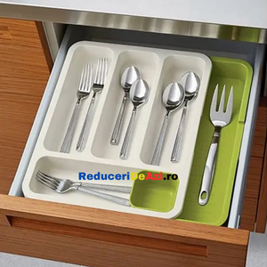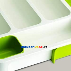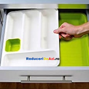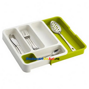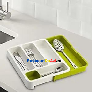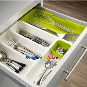 - Faptul ca este extensibil, permite asezarea acestuia cu usurinta in sertare de dimensiuni variabile si sortarea mai usoara a tacamurilor.