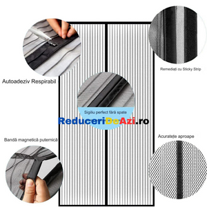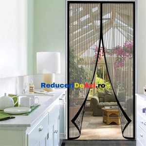 Are deschidere centrala si a fost proiectata din tesatura lejera care previne intrarea insectelor (muste, tantari, viespi .), dar permite luminii sa treaca. Aceasta perdea magnetica anti insecte este foarte confortabila pentru oameni si animale de companie datorita deschiderii sale rapide si inchiderii magnetice automate (cu magneti incorporati pe margini).