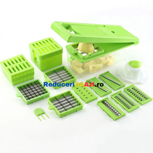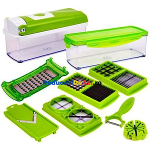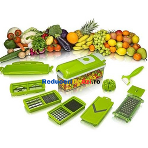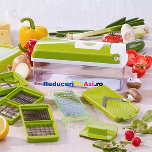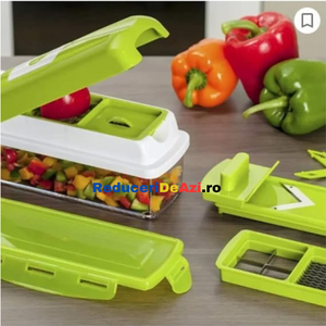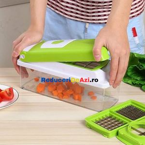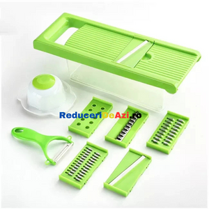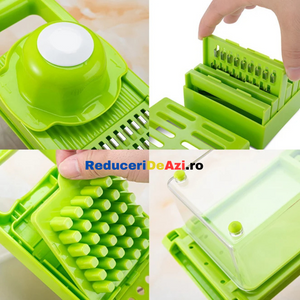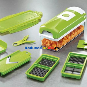 Va place sa taiati estetic si repede ingredientele pentru preparatele pe care le gatiti? Cu razatoarea multifunctionala legumele si fructele nu au aratat nicicand mai bine in mancarea dumneavoastra! Interesant la acest produs este multifunctionalitatea sa, deoarece poate sa: taie, decojeasca, marunteasca, felieze si sa faca niste cuburi egale!