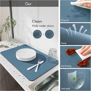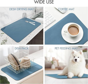 Această saltea de uscare pentru bucătărie poate fi plasată oriunde doriți să absorbiți apa, cum ar fi pe blaturile din bucătărie, rafturi, sub chiuvetă, blaturi de baie, mese de dining. Este, de asemenea, excelentă pentru animale de companie, ca suport pentru mâncare sau pat.