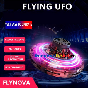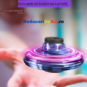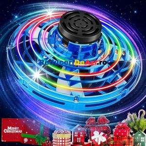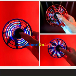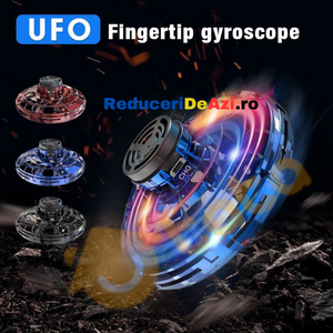 Fidget spinner zburator cu ventilator interior sub forma de drona rotativa, OZN, rotatie 360 de grade, cu efect de bumerang, incarcare USB, leduri colorate