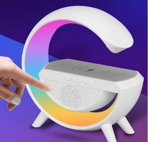 Nume produs: Statie Incarcare Wireless 3 in 1 cu lampa RGB, Boxa Bluetooth, Difuzor 5W, Ceas Digital Cu Alarma , Lumini Ambientale, Sincronizare muzicala , USB, FM Radio, MicroSD ,Control Aplicatie, Alb