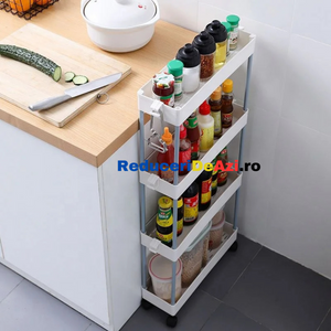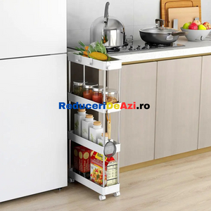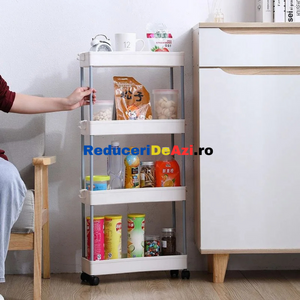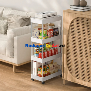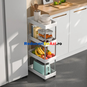 Suportul de depozitare cu 4 rafturi și roti pentru baie sau bucătărie este soluția perfectă pentru organizarea spațiului tău, oferindu-ți beneficii remarcabile: