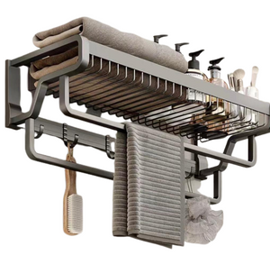 Suportul rabatabil pentru prosoape este o soluție versatilă și economisitoare de spațiu pentru baia ta. Fabricat din aluminiu de înaltă calitate, cu un finisaj argintiu elegant, combină durabilitatea cu eleganța modernă. Acest suport are multiple funcții, inclusiv o bară robustă pentru prosoape, cârlige pentru halate sau obiecte mai mici și un design pliabil care îl face perfect pentru spații compacte. Designul eficient asigură organizarea ordonată a accesoriilor de baie, maximizând spațiul disponibil.
