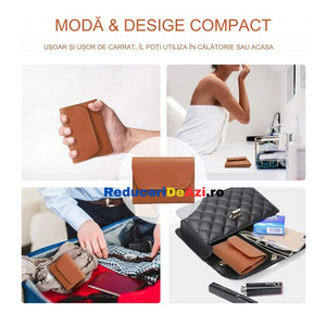 Trusa poate fi utilizata si in calatorie, cu un design portabil, usor. Calitatea produsului este premium, luxuriant si rezistent, poate fi cadoul ideal.