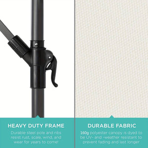 Construită cu grijă, cadrul și piciorul metalic asigură o stabilitate maximă, iar materialul din poliester al umbrelei oferă protecție împotriva radiațiilor UV. Deschiderea umbrelei este simplă, prin rotirea manivelei manuale, iar unghiul de înclinare reglabil permite ajustarea pentru a maximiza gradul de umbrire dorit.