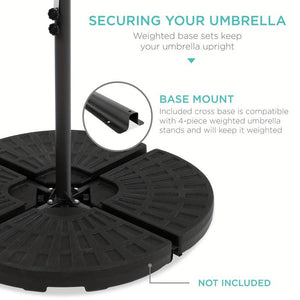 Umbrela are un diametru de 5 cm și o greutate de 10,6 kg, fiind solid ancorată în sol. Pachetul conține umbrela suspendată cu cadru metalic, talpi din metal, suruburile și șaibele necesare asamblării, precum și o cheie hexagonală pentru montaj.